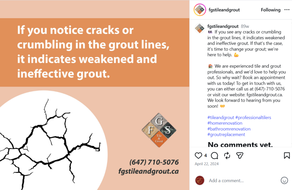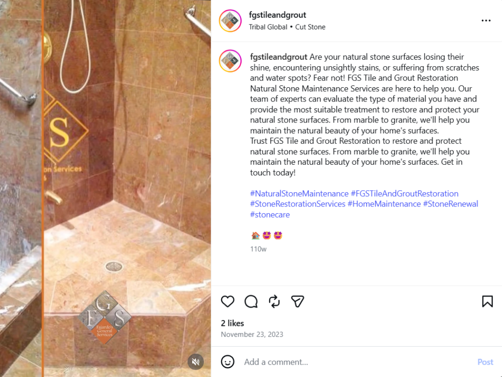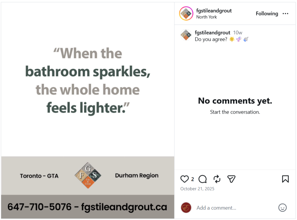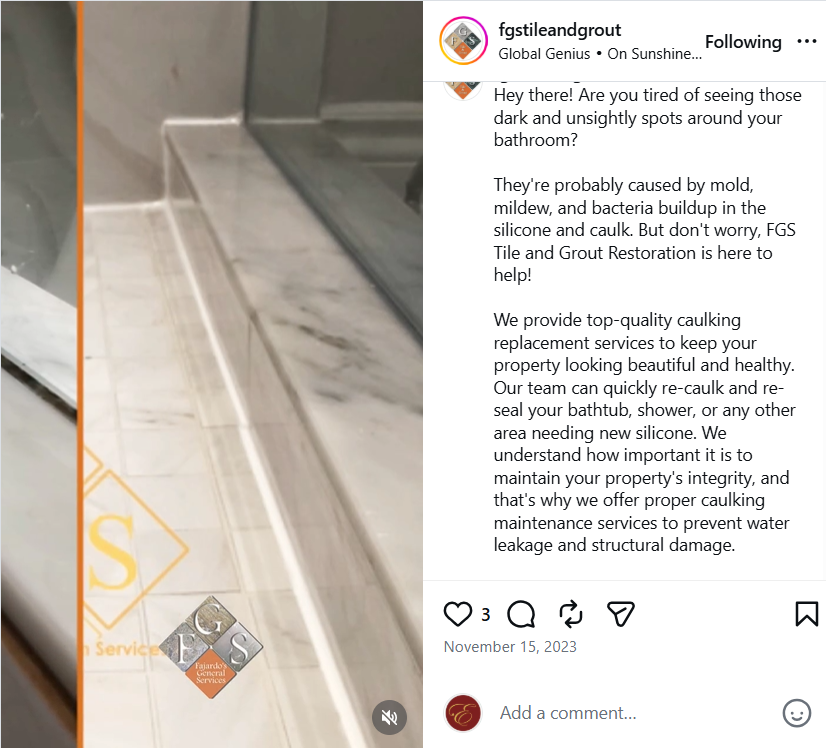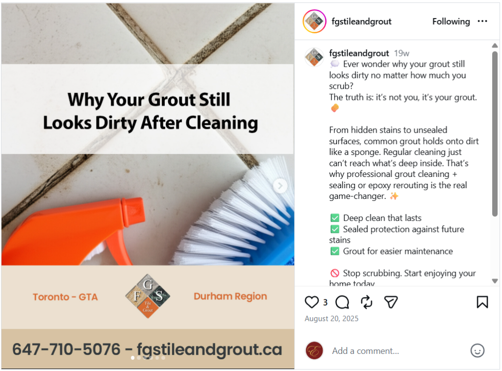 To expand their digital reach, we launched and managed FGS Tile and Grout’s Instagram, Facebook, and YouTube platforms in 2018. We showcased before and after project updates, customer testimonials, and seasonal messages, and have continued to improve the graphics, copy, and strategy over time. In 2021, we revamped their website to enhance its functionality and user experience.